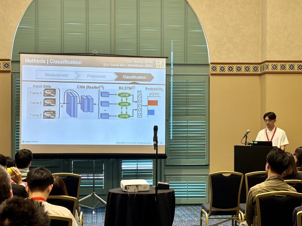 7月15日〜19日にアメリカ フロリダ州のオーランドで開催された国際会議 46th Annual International Conference of the IEEE Engineering in Medicine and Biology Society (EMBC 2024) にて,M2米田君とM2吉冨君が下記の内容について口頭発表を行いました.