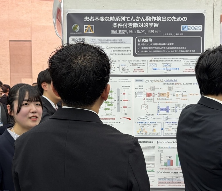 - 田﨑莉菜, 秋山倫之, 古居彬,“患者不変な時系列てんかん発作検出のための条件付き敵対的学習,” 第26回計測自動制御学会システムインテグレーション部門講演会(SI2025), pp. 662–667, 2025年12月.