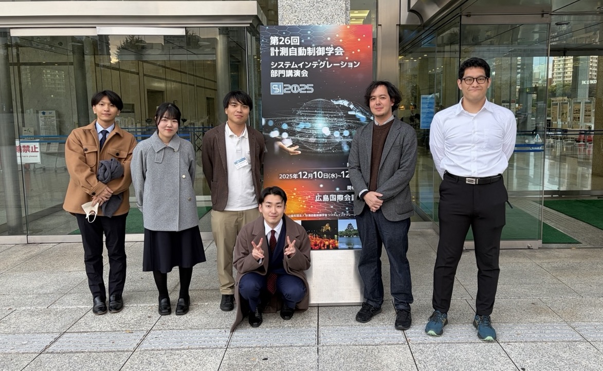 2025年12月10〜12日に広島県広島国際会議場で開催された第26回計測自動制御学会システムインテグレーション部門講演会(SI2025)にて,M2の矢沢樹君,M1の田﨑莉菜さん・正木淳君,B4の竹内伶君・塚本修平君が下記の内容でポスター発表を行いました.